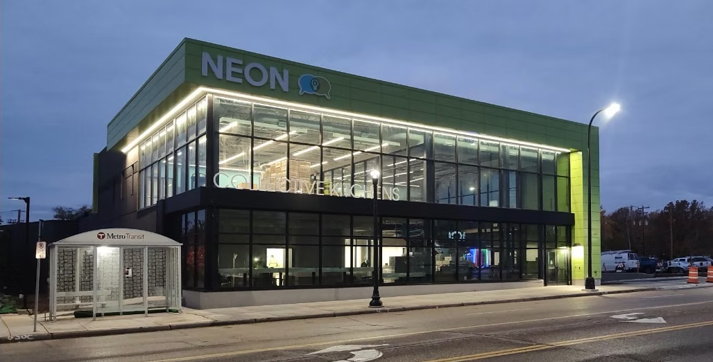 NEON Collective Kitchens is a new 25,000-square-foot commercial kitchen and food business incubator in North Minneapolis designed to help entrepreneurs start, grow, and scale food businesses.